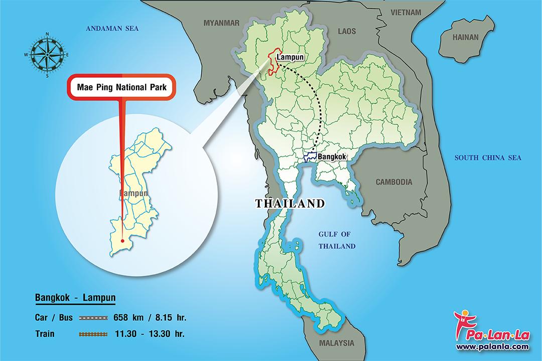 อุทยานแห่งชาติแม่ปิง ตั้งอยู่ อำเภอลี้ จังหวัดลำพูน ห่างจากตัวเมืองลำพูน 130 กิโลเมตร ใช้เวลาเดินทางโดยรถยนต์ 2 ชั่วโมง