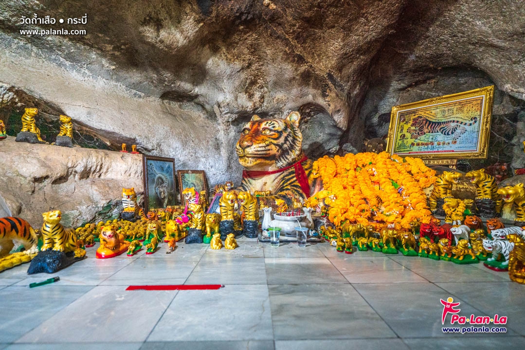 วัดถ้ำเสือ (Wat Tham Suea) วัดดังอีกแห่งหนึ่งของจังหวัดกาญจนบุรี ภายในวัดเป็นที่ประดิษฐานหลวงพ่อชินประทานพร ซึ่งเป็นพระพุทธรูปปางประทานพรองค์ใหญ่ที่สุดในจังหวัด โดยองค์พระพุทธรูปนี้ตั้งอยู่บนยอดเขาและบริเวณใกล้กันยังมีสิ่งปลูกสร้างอื่นๆ ที่มีความงดงามเป็นอย่างมาก เช่น พระเจดีย์เกศแก้วมหาปราสาทและพระอุโบสถ โดยนักท่องเที่ยวสามารถเดินขึ้นบันไดนาคเพื่อขึ้นไปสักการะได้ หรือหากไม่สะดวกก็มีรถรางขึ้นเขาให้บริการอีกด้วย