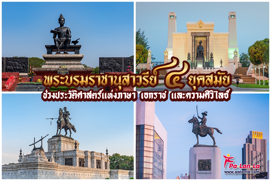ชาติไทยของเรานั้นกว่าจะมาเป็นชาติและแผ่นดินที่เป็นปึกแผ่นอย่างทุกวันนี้นั้นผ่านเรื่องราวและเหตุการณ์ต่างๆ มามากมาย โดยเฉพาะในช่วงประวัติศาสตร์ที่บอกเล่าถึงการเปลี่ยนแปลงครั้งใหญ่ในยุคสมัยต่างๆ วันนี้ทาง Palanla จึงขอนำทุกท่านรำลึกถึงประวัติศาตร์ที่เป็นจุดเปลี่ยนของแต่ละยุคสมัยผ่านทางการท่องเที่ยวพระบรมราชานุสาวรีย์สี่แห่งที่เป็นตัวแทนจากยุคต่างๆ โดยเริ่มจากยุคกรุงสุโขทัย ณ พระบรมราชานุสาวรีย์พ่อขุนรามคำแหงมหาราช จังหวัดสุโขทัย, ยุคกรุงศรีอยุธยา ณ พระบรมราชานุสาวรีย์สมเด็จพระนเรศวรมหาราช จังหวัดพระนครศรีอยุธยา, ยุคกรุงธนบุรี ณ พระบรมราชานุสาวรีย์สมเด็จพระเจ้าตากสินมหาราช กรุงเทพฯ ฝั่งธน และยุครัตนโกสินทร์ ณ พระบรมราชานุสาวรีย์พระบาทสมเด็จพระพุทธยอดฟ้าจุฬาโลกมหาราช รัชกาลที่ 1 กรุงเทพฯ ฝั่งพระนคร