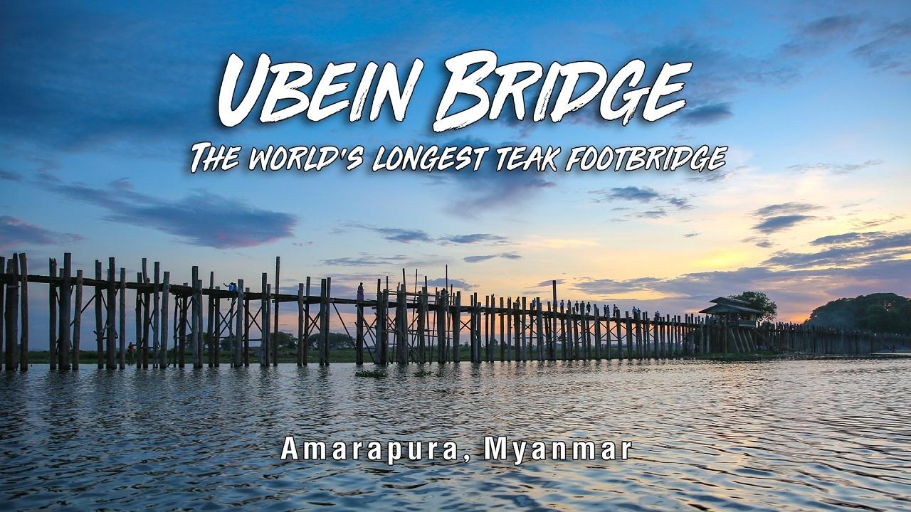 สะพานอูเบ็ง สะพานไม้สักที่ยาวและเก่าแก่ที่สุดในโลก มีอายุกว่า 167 ปี และมีความยาวกว่า 1.2 กิโลเมตร สร้างขึ้นจากไม้สักจำนวน 1,086 ต้น ซึ่งเป็นไม้ที่เหลือจากการรื้อพระราชวังกรุงอังวะในปี ค.ศ.1783 ในสมัยที่พระเจ้าปดุงโปรดให้ย้ายเมืองหลวงจากเมืองอังวะ มายังเมืองอมรปุระ และนอกจากจะเป็นสถานที่ท่องเที่ยวขึ้นชื่อในเรื่องของจุดชมวิวยามพระอาทิตย์ตกแล้ว สะพานอูเบ็งยังเป็นสถานที่ซึ่งชาวเมียนมาร์ใช้สัญจรไปมาในชีวิตประจำวันอีกด้วย