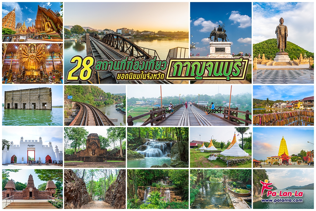 จังหวัดกาญจนบุรีเป็นจังหวัดใหญ่ที่ตั้งอยู่ในภาคตะวันตกและมีพรมแดนติดกับประเทศพม่า เป็นจังหวัดที่เต็มไปด้วยธรรมชาติอันอุดมสมบูรณ์ มีสถานที่ท่องเที่ยวทางธรรมชาติมากมายไม่ว่าจะเป็นแม่น้ำ น้ำตก และถ้ำ อีกทั้งยังเป็นดินแดนแห่งประวัติศาสตร์ของเหตุการณ์สงครามโลกครั้งที่ 2 และเส้นทางรถไฟสายมรณะอีกด้วย ที่นี่จึงเต็มไปด้วยสถานที่ท่องเที่ยวทางประวัติศาสตร์ที่น่าสนใจหลายแห่ง นอกจากนี้ยังมีวัดวาอารามและสถานที่ท่องเที่ยวทางวัฒนธรรมที่มีเอกลักษณ์อีกมากมาย ทาง Palanla จึงได้รวบรวม 28 สถานที่ท่องเที่ยวยอดนิยมในจังหวัดกาญจนบุรีมาฝากทุกท่านเพื่อเป็นแนวทางในการวางแผนท่องเที่ยวในวันหยุดหน้ากัน